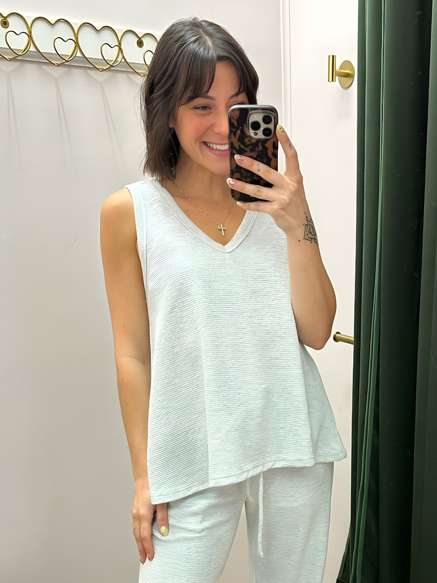 Meet the tank you’ll reach for on repeat. The Everyday Ease V-Neck Lounge Tank is designed with a relaxed silhouette and soft textured knit that makes looking put-together feel completely effortless.