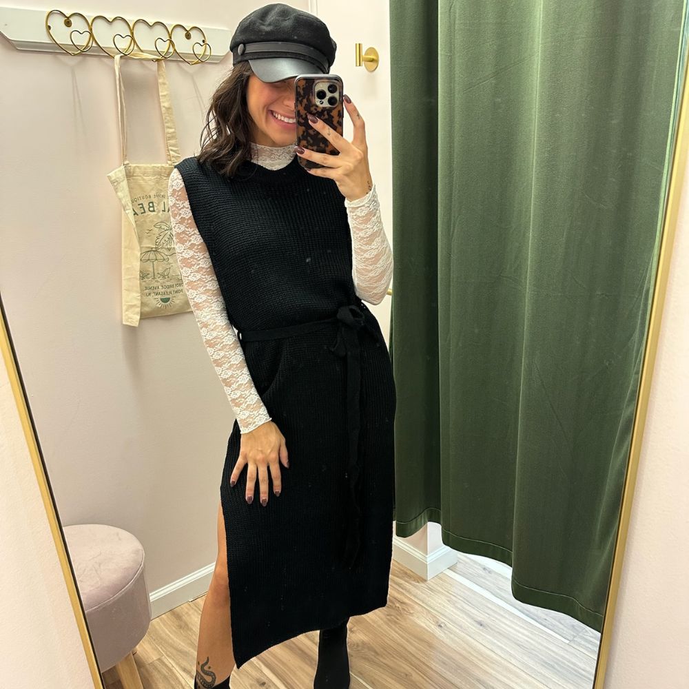 A sleek knit maxi dress with a crew neckline and sleeveless design. Timeless, comfy, and easy to style for any occasion.