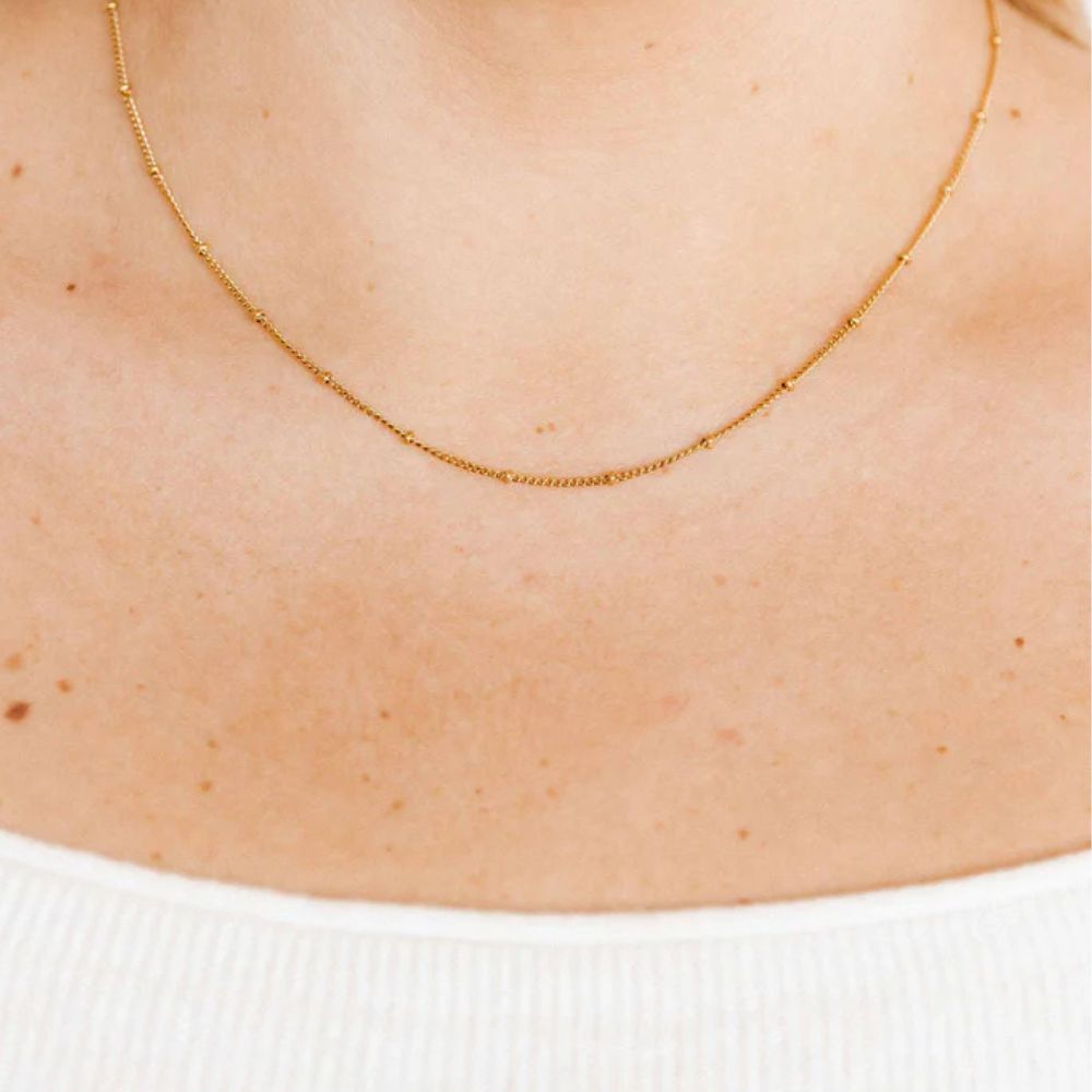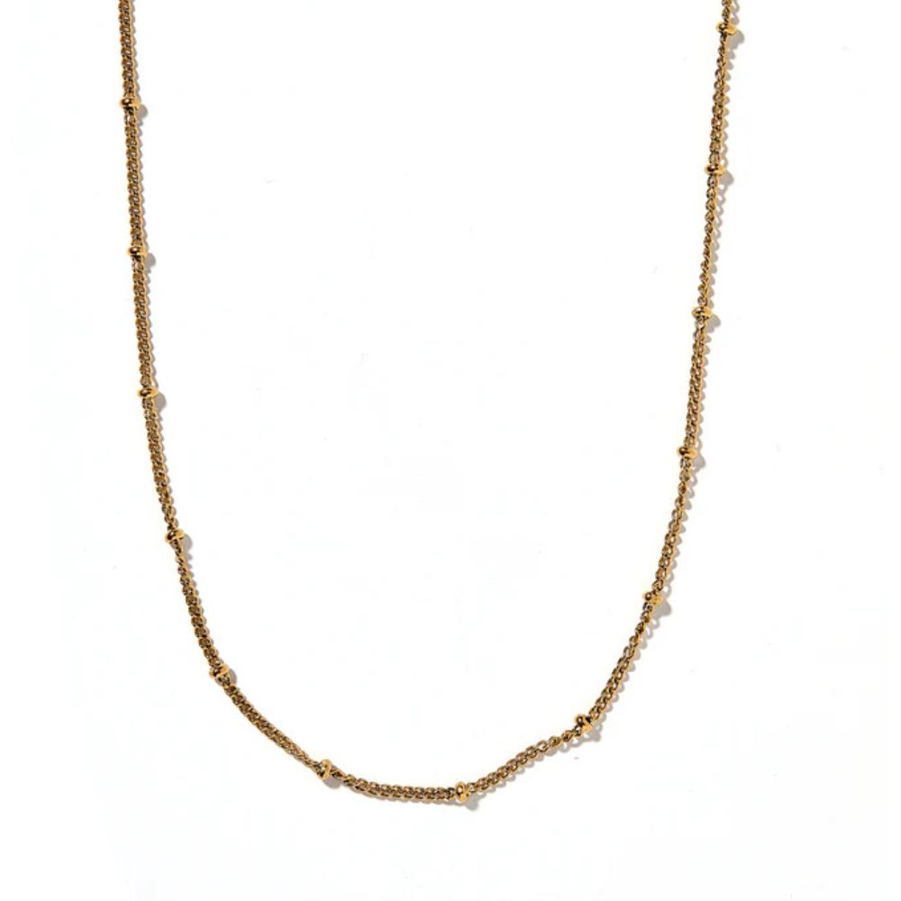 Sleek and modern, the Miles Necklace features a gold/ silver chain accented with polished gold/silver beads. Crafted from 100% surgical-grade stainless steel, it’s lightweight, hypoallergenic, and made to last. The 16-inch chain with a 2-inch extender offers an adjustable, comfortable fit.