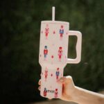Get into the festive spirit with our Nutcrackers Christmas Drink Tumbler! This light pink tumbler features an array of charming nutcracker designs, adding a delightful touch to your holiday gatherings. With its sturdy construction and generous size, this tumbler is perfect for enjoying your favorite beverages throughout the holiday season. But here’s the deal: Our holiday collection flies off the shelves faster than Santa’s sleigh on Christmas Eve!Customers can’t resist the adorable nutcracker motifs and the festive vibes this tumbler brings. Grab yours before they’re gone and make this holiday season merry and bright with our Nutcrackers Christmas Drink Tumbler! 38 ounces includes reusable plastic straw all-day chill or heat stainless steel interior solid colors are dishwasher safe, but we recommend hand washing our printed tumblers screw-on plastic top with straw opening adjustable straw cover for easy travel easy-to-hold handle fits in car cup holder (3” diameter at base)