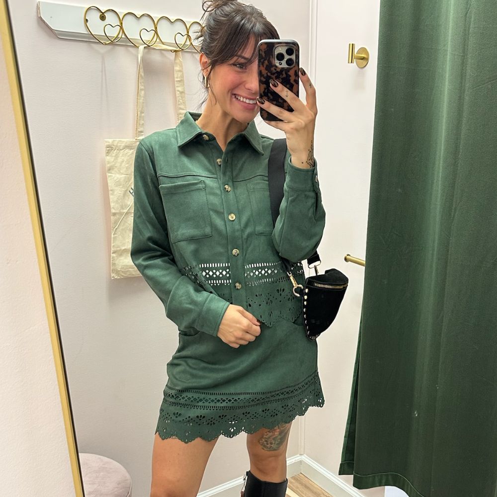 Add texture and a touch of western charm to your wardrobe with this soft sage green jacket. Designed in a faux suede finish, it features front pockets and a laser-cut hem that blends utility and femininity in one standout piece.